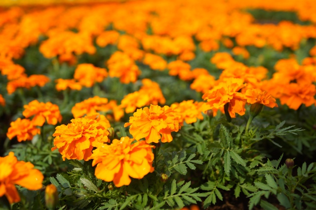 赤レンガ倉庫の広場で大きな花壇を作成中。