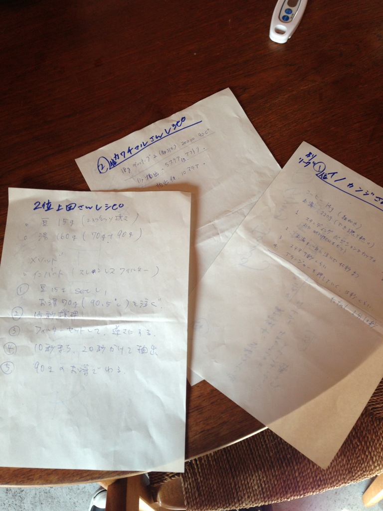 同じ豆、同じ挽き目なのに抽出方法でフレーバーの出方、甘さの出方が様々で面白かった。