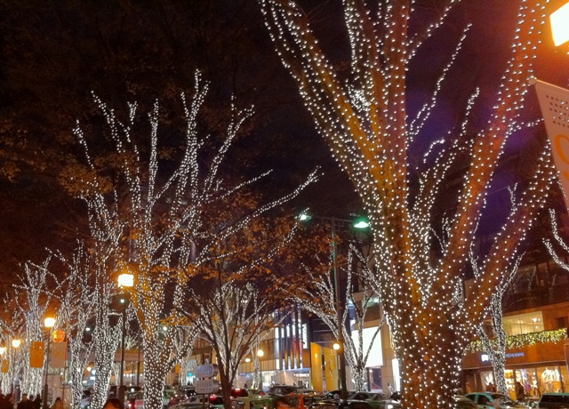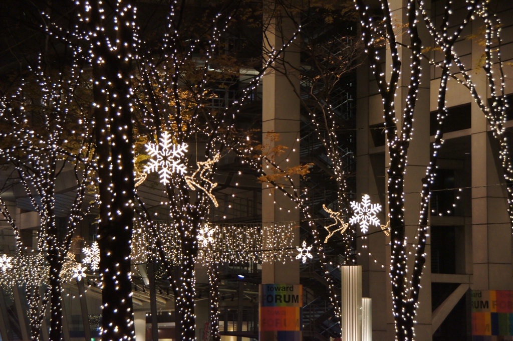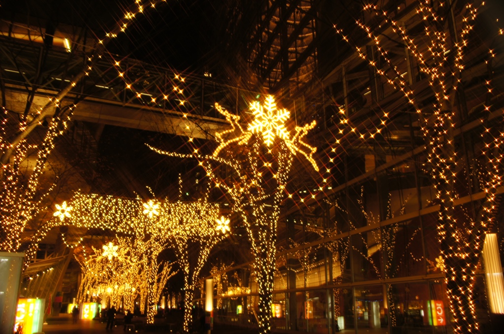 イルミネーションはきれいだねぇ。歩道橋の上から撮りたかったんだけど、通行禁止になってました。