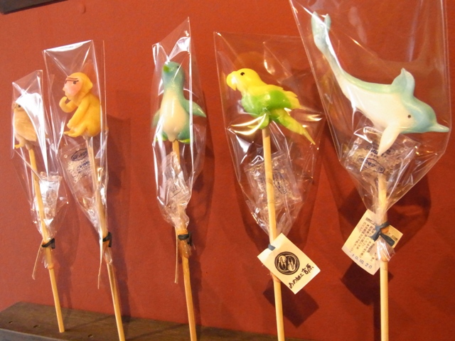 最近オープンしたそうで、たまに夜店なんか出るようなあめ細工を目の前で作ってくれるんですが、おもしろいのが上の写真みたいに季節に合わせて可愛く作ったりとオリジナリティに富んでること。