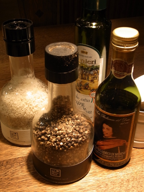 スパイスいっぱい。ミル付きでとってもいい感じ。卓上にバルサミコ酢ってすごいな。