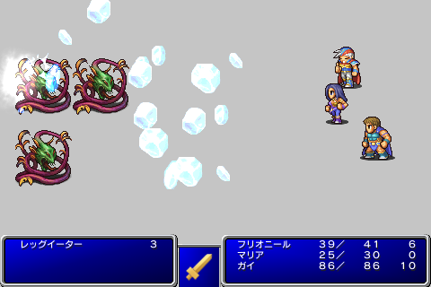 まだジョブの概念がないのでどのキャラも好き勝手育てられる感じですが、個人的には6みたいに各人個別のジョブがある方がいいね。で、キャラもいっぱいいて好きなのを選ぶ感じ。