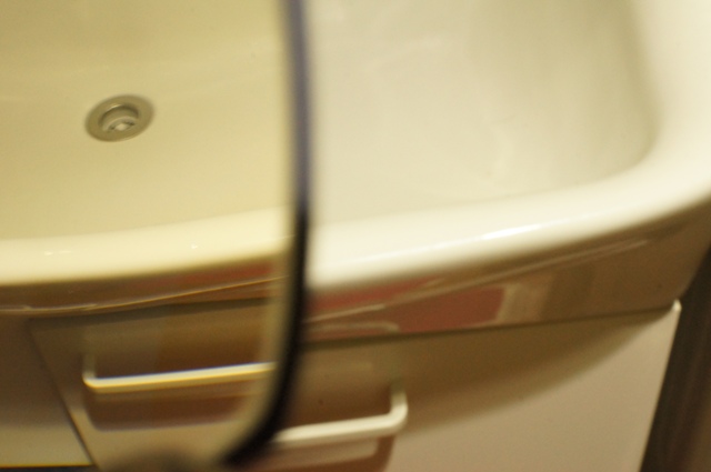 ちょっとわかりにくいですが、蛍光灯下の洗面所。