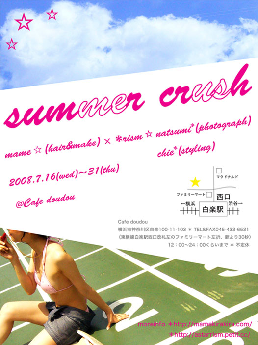 友人がガールズphotoユニット*rism とコラボして写真展☆summer crush☆をやるらしいので告知のっけときます。