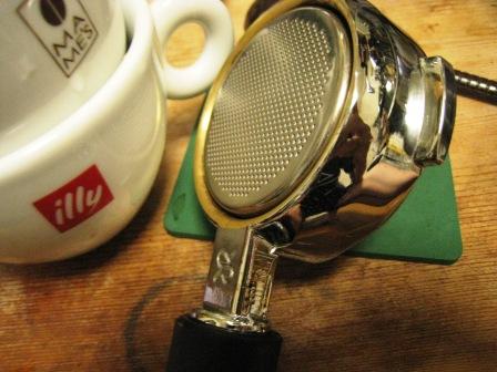 通常のポータフィルターはダブルのバスケットですが、こちらはトリプル。