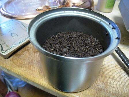 中挽きにした豆をセットし、お水を少しずつ垂らして全体に浸透させます。蒸らしみたいなもんですね。