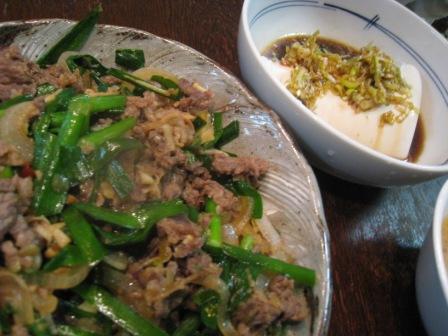 あとはいためて途中からにらぶち込んで、仕上げに白ゴマ・・・とおもったら白ゴマねぇし。