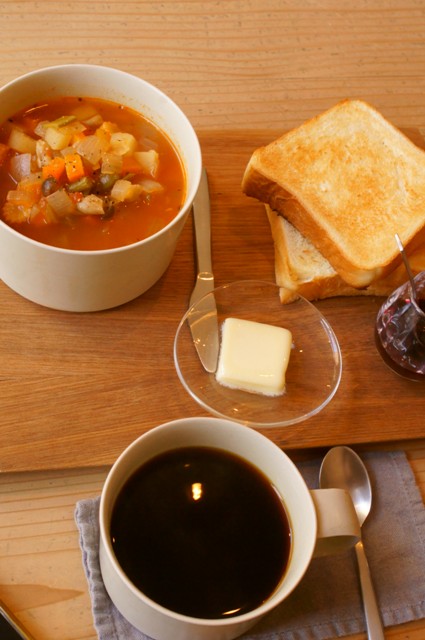 スープセットとスコーン、セットの飲み物で珈琲をオーダー。使ってる豆は秘密でした。
