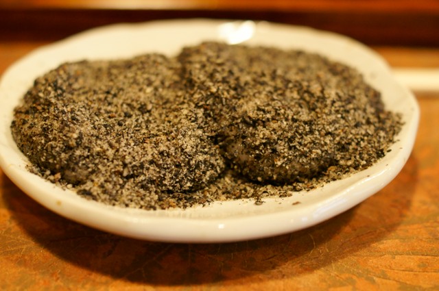 どんぶりのやつは麺つゆがかかってて、下のやつはゴマね。